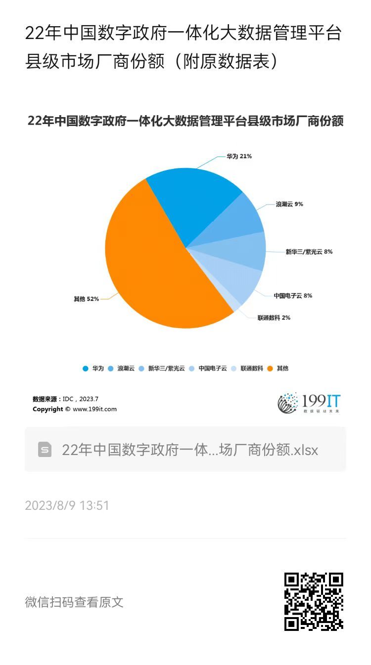- 22年中国数字政府一体化大数据管理平台省级市场厂商份额(附原数据表)