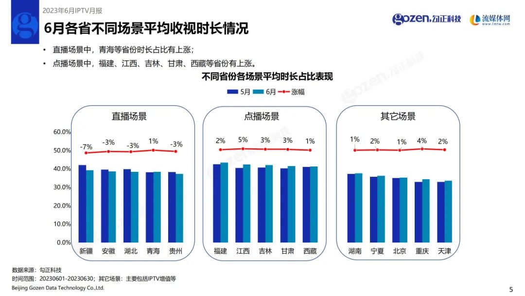 直播场景中,青海等省份时长占比上涨;