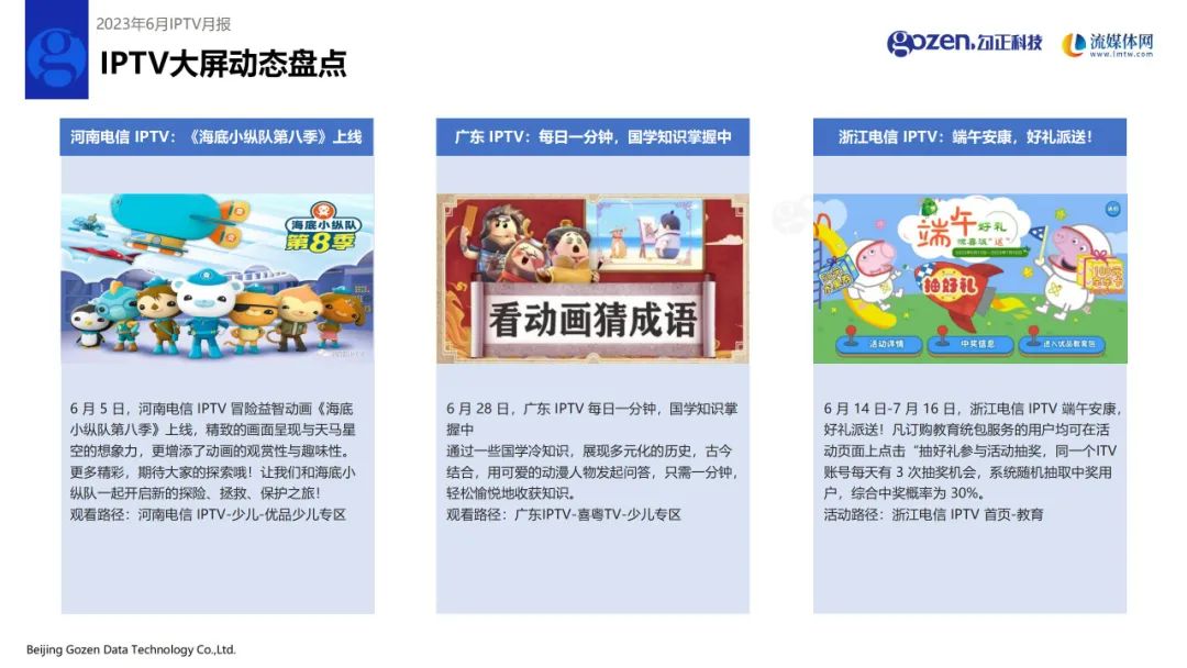 本月直播、点播、其他场景平均收视时长分别上涨2分钟、9分钟、6分钟;