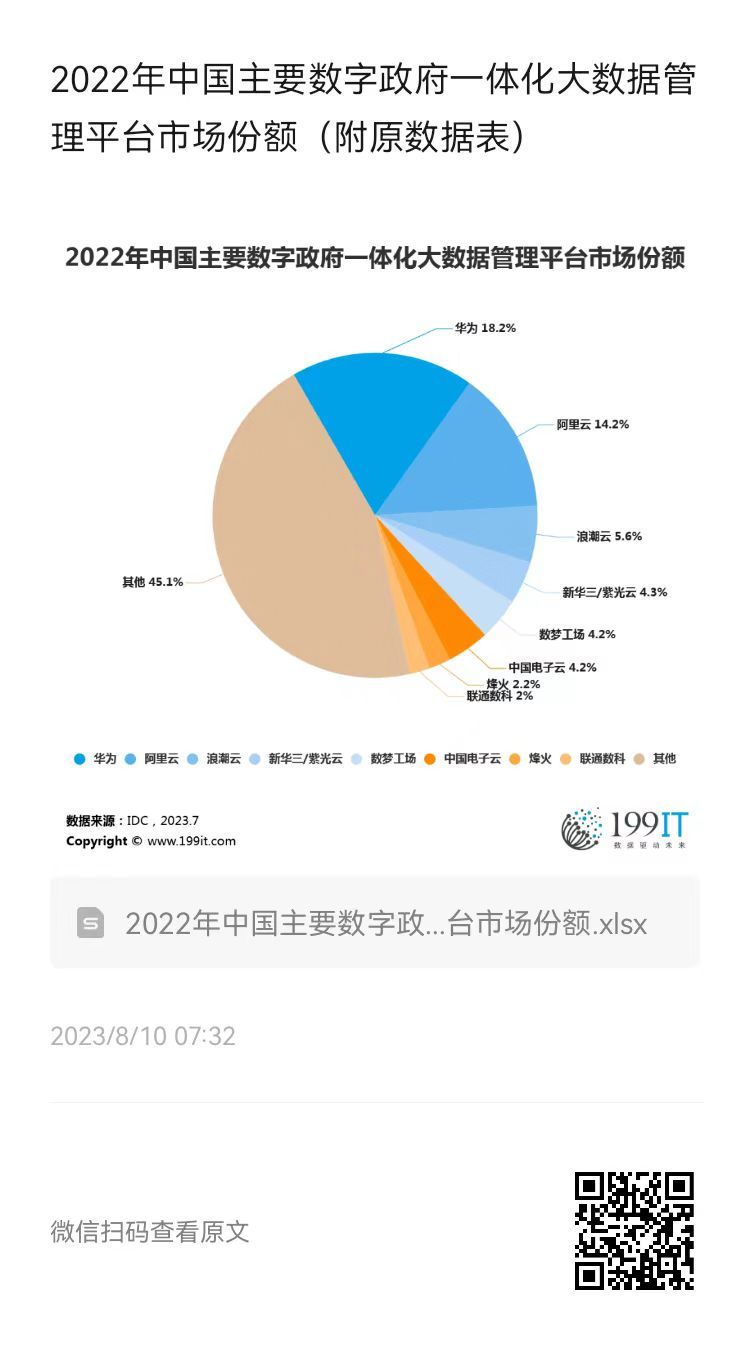 - 22年中国数字政府一体化大数据管理平台省级市场厂商份额(附原数据表)