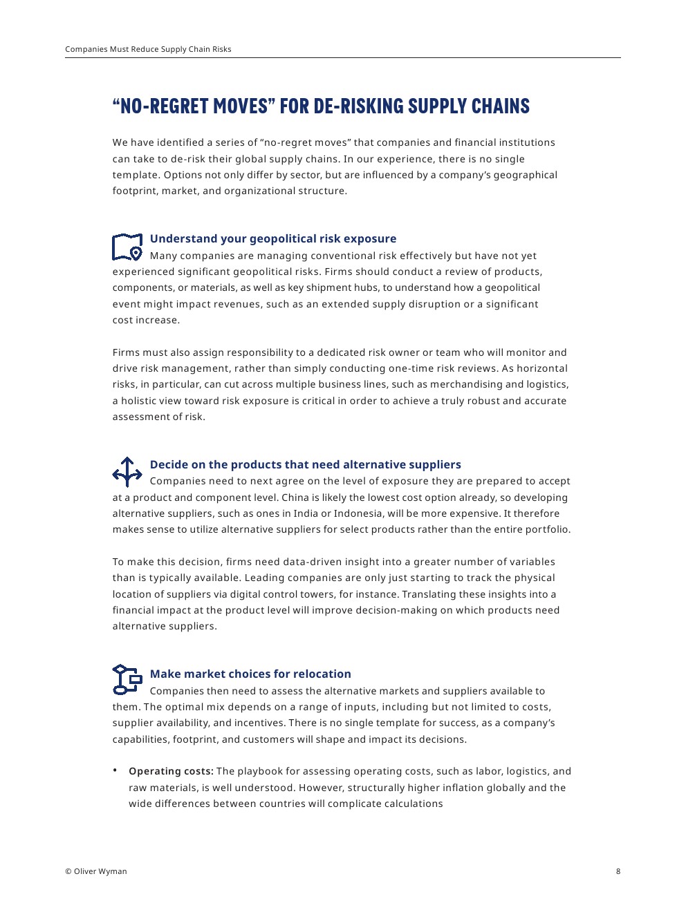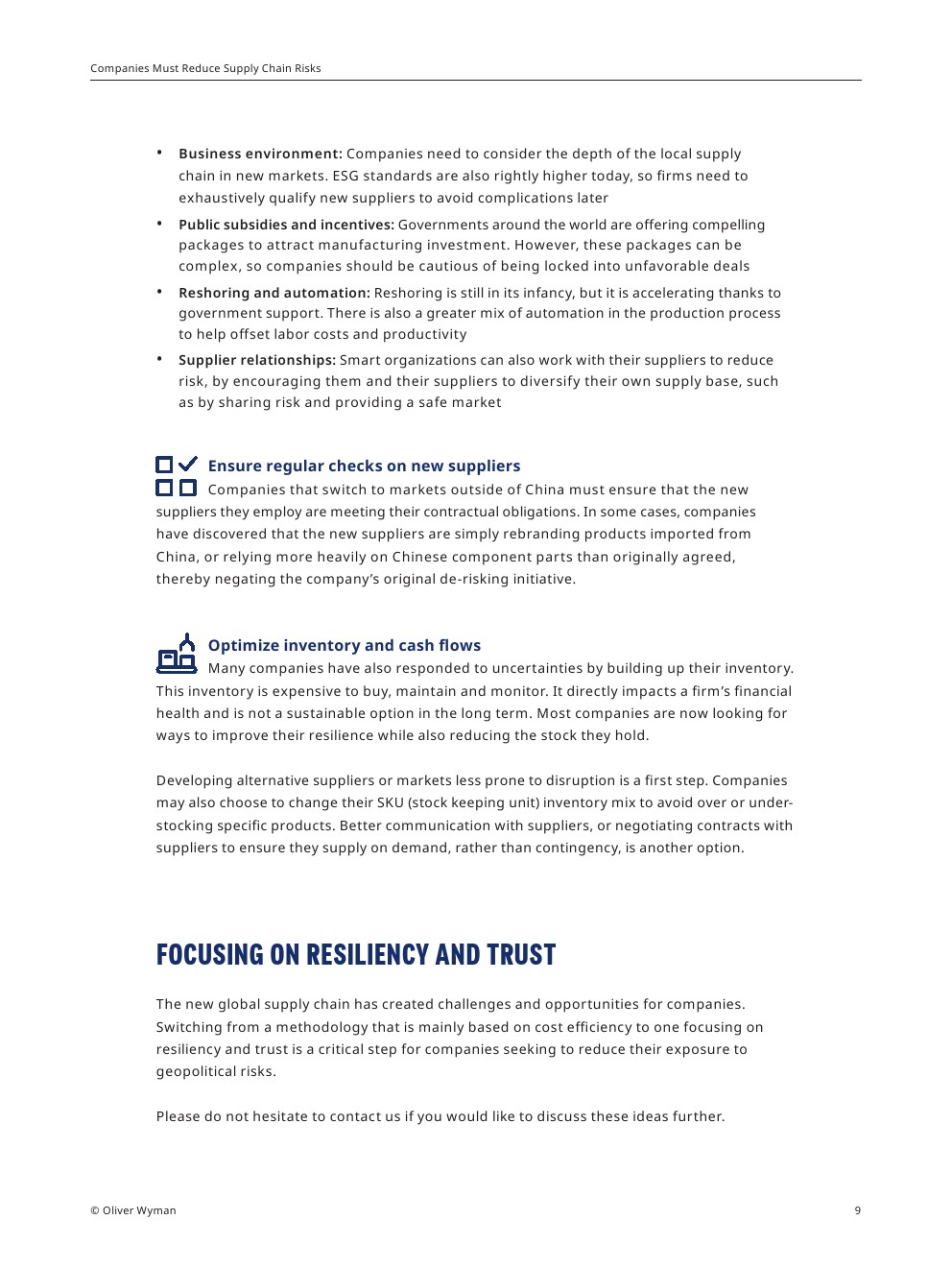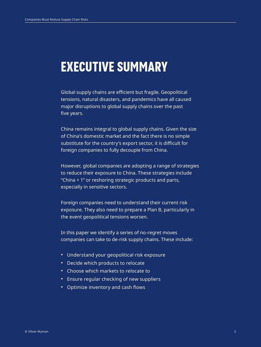 在报告中,我们确定了公司可以采取的一系列措施来降低供应链风险,包括: