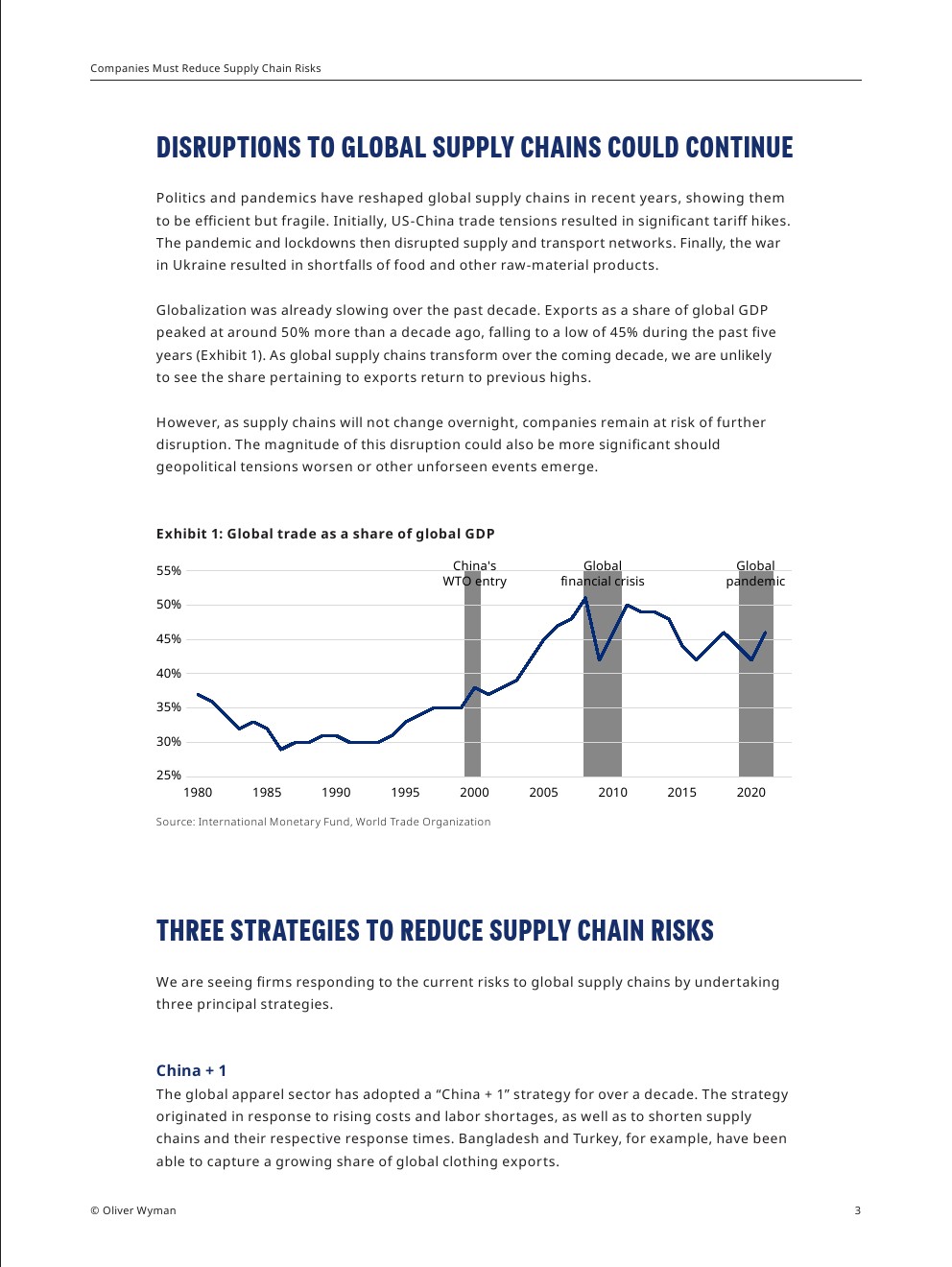 企业通过采取三项主要战略来应对当前全球供应链面临的风险: