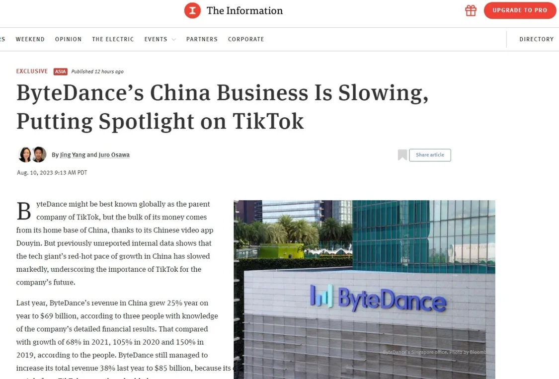 随着业务增速放缓,字节跳动需要TikTok在美国禁令的威胁下顽强生存、并迅速增加收入,以此提升公司的整体水平。