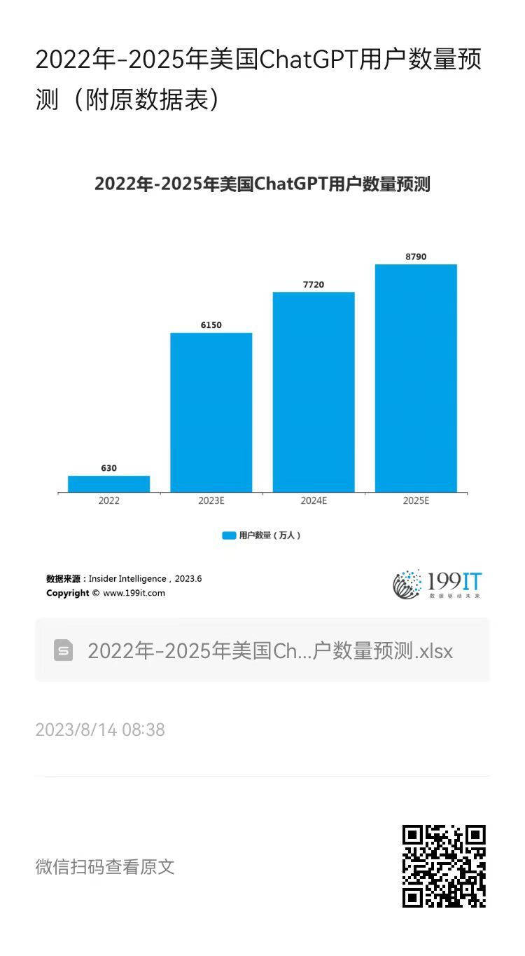 2022年-2025年美国ChatGPT用户数量预测(附原数据表) ​​​
