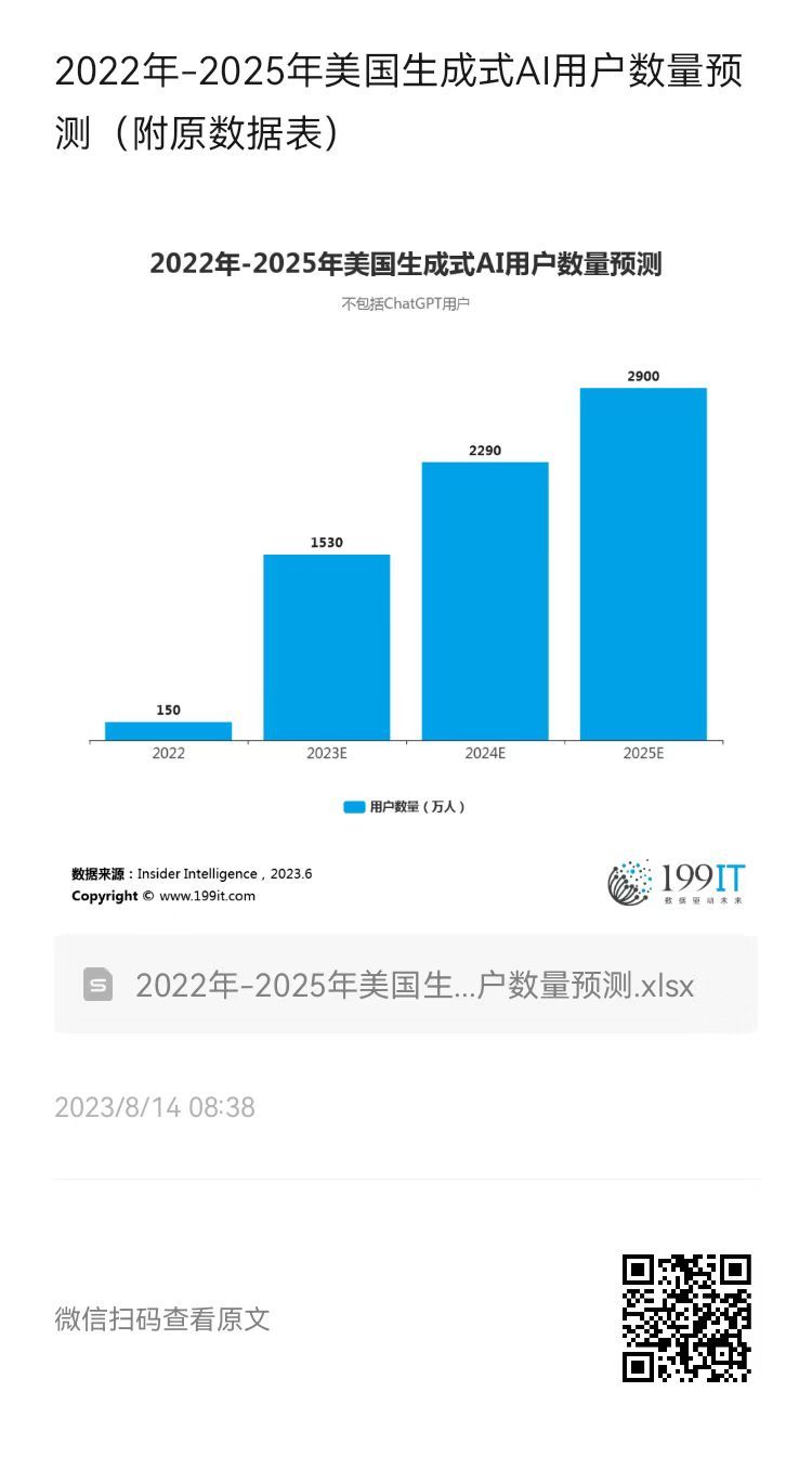 2022年-2025年美国生成式AI用户数量预测(附原数据表) ​​​