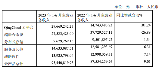 青云科技2023上半年各业务营收情况如下: