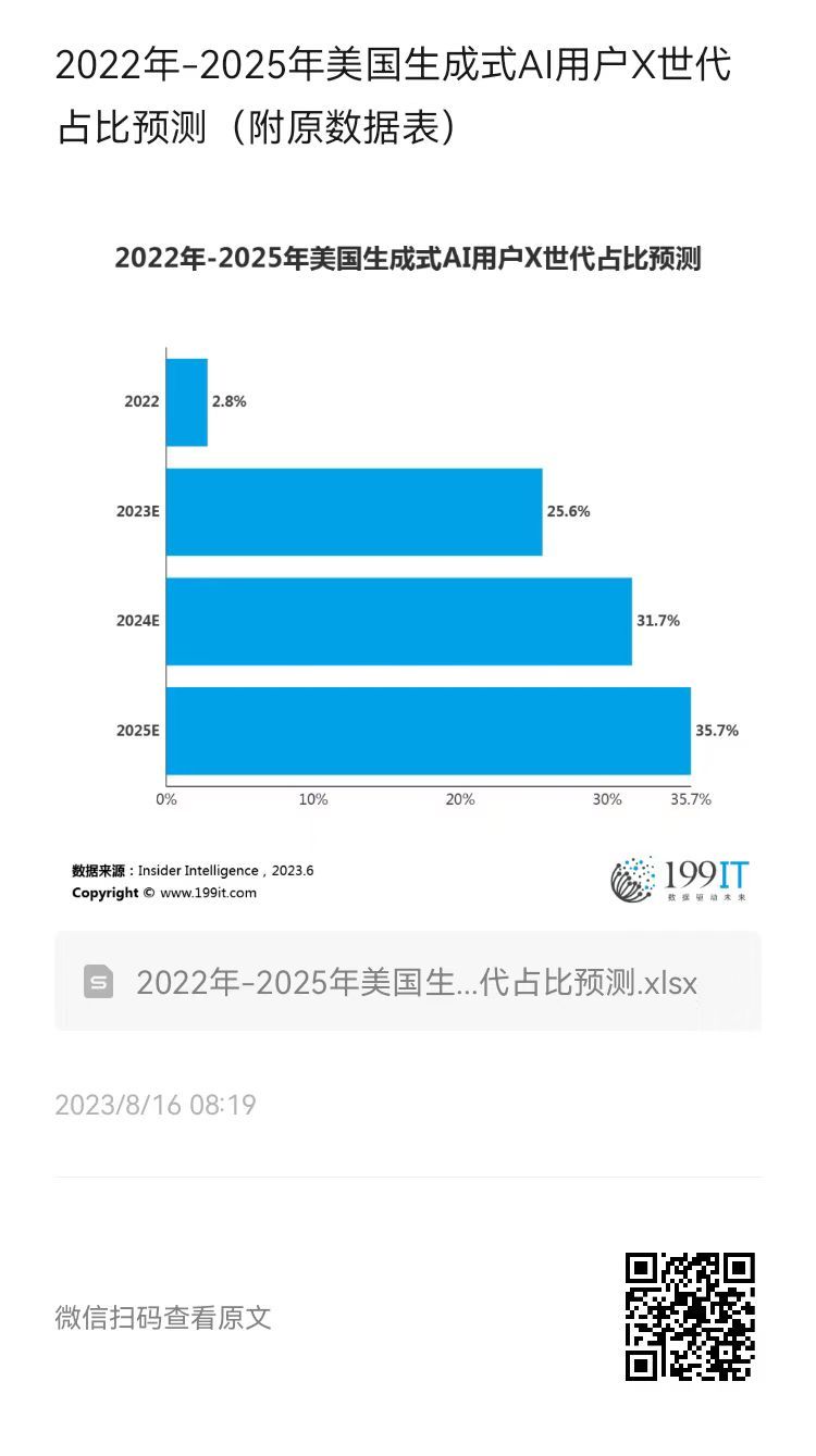 2022年-2025年美国生成式AI用户X世代占比预测(附原数据表) ​​​