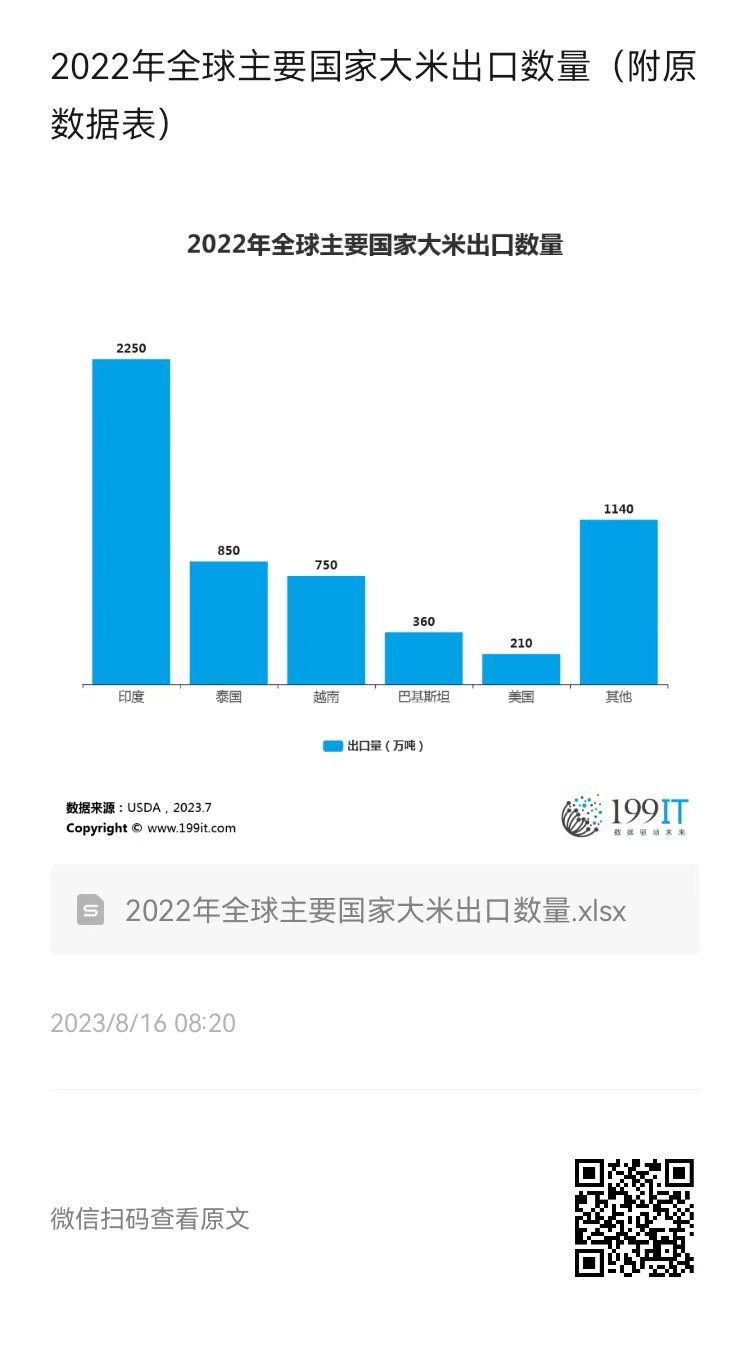 2022年全球主要国家大米出口数量(附原数据表) ​​​