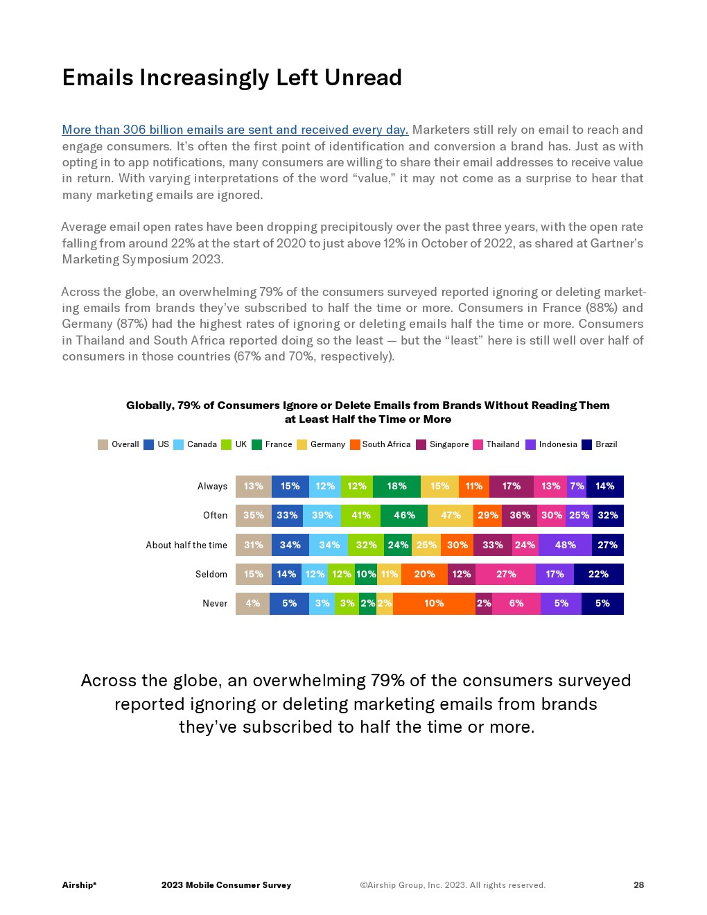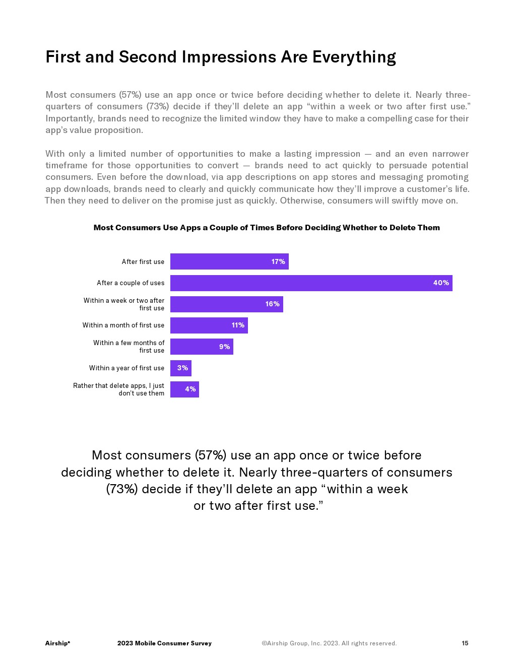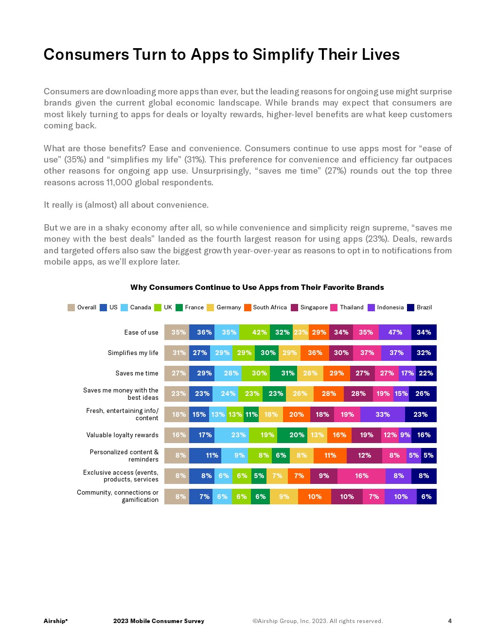 Airship发布了“2023年移动消费者报告”。Airship一直在追踪移动应用行业的全球趋势,并分享自14年前推出首款推送通知以来的经验。