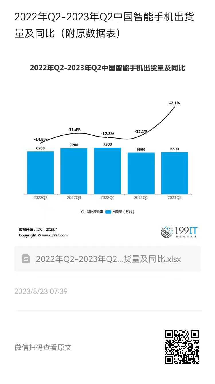 - 2021年Q1-2023年Q1中国智能手机出货量及增长率(附原数据表)