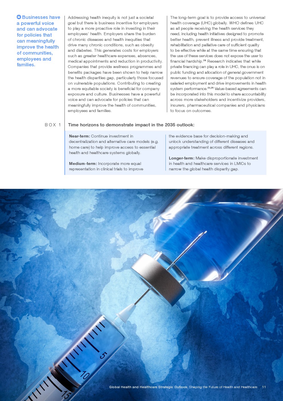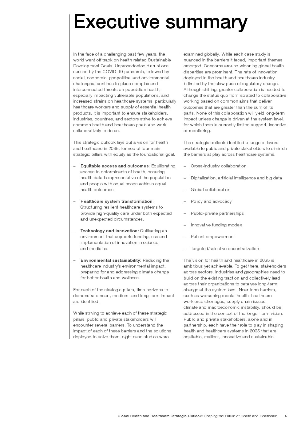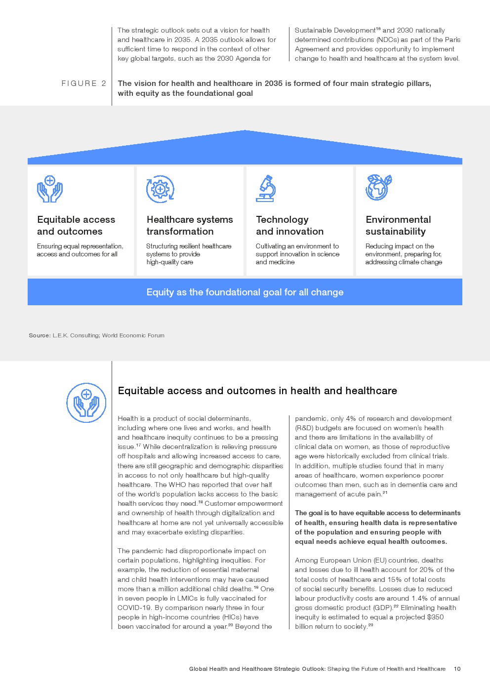 这一战略展望提出了2035年卫生和保健远景,由四个主要战略支柱组成,以公平为基本目标。