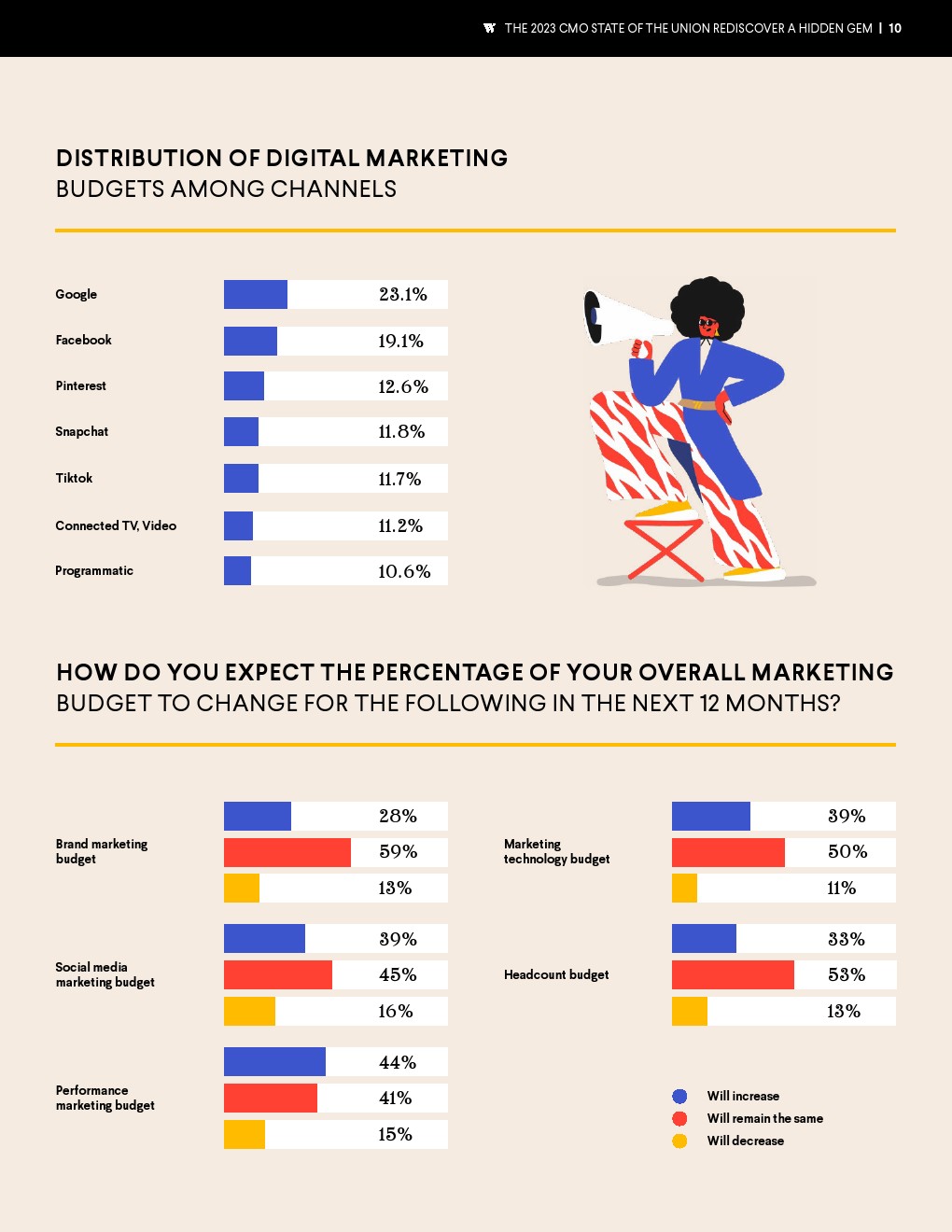 26%的高级营销人员表示,品牌营销是2023年的首要投资,略高于优先考虑绩效营销的人数(23%)。