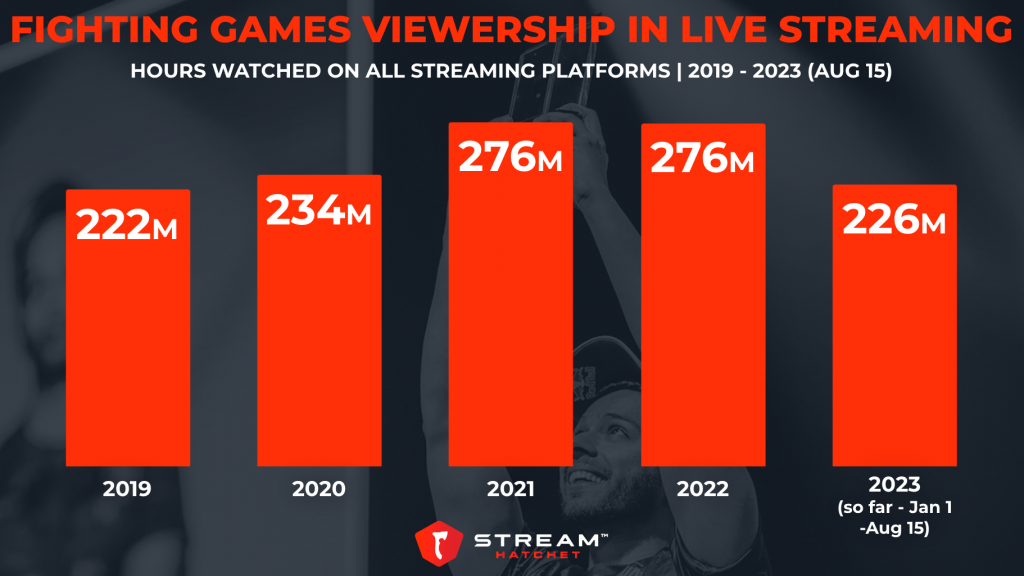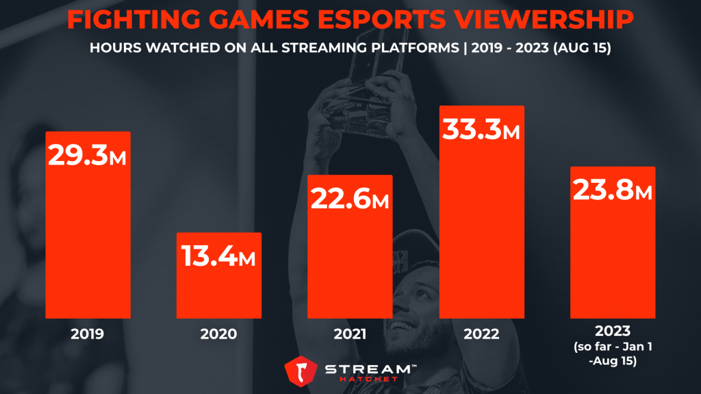 但是,最近几年出现了复苏。2022年是观看格斗游戏电竞赛事时间最长的一年,观看时间为3330万小时,比2019年多400万小时。到目前为止,2023年的这一数字为2380万小时,有望超过2022年。