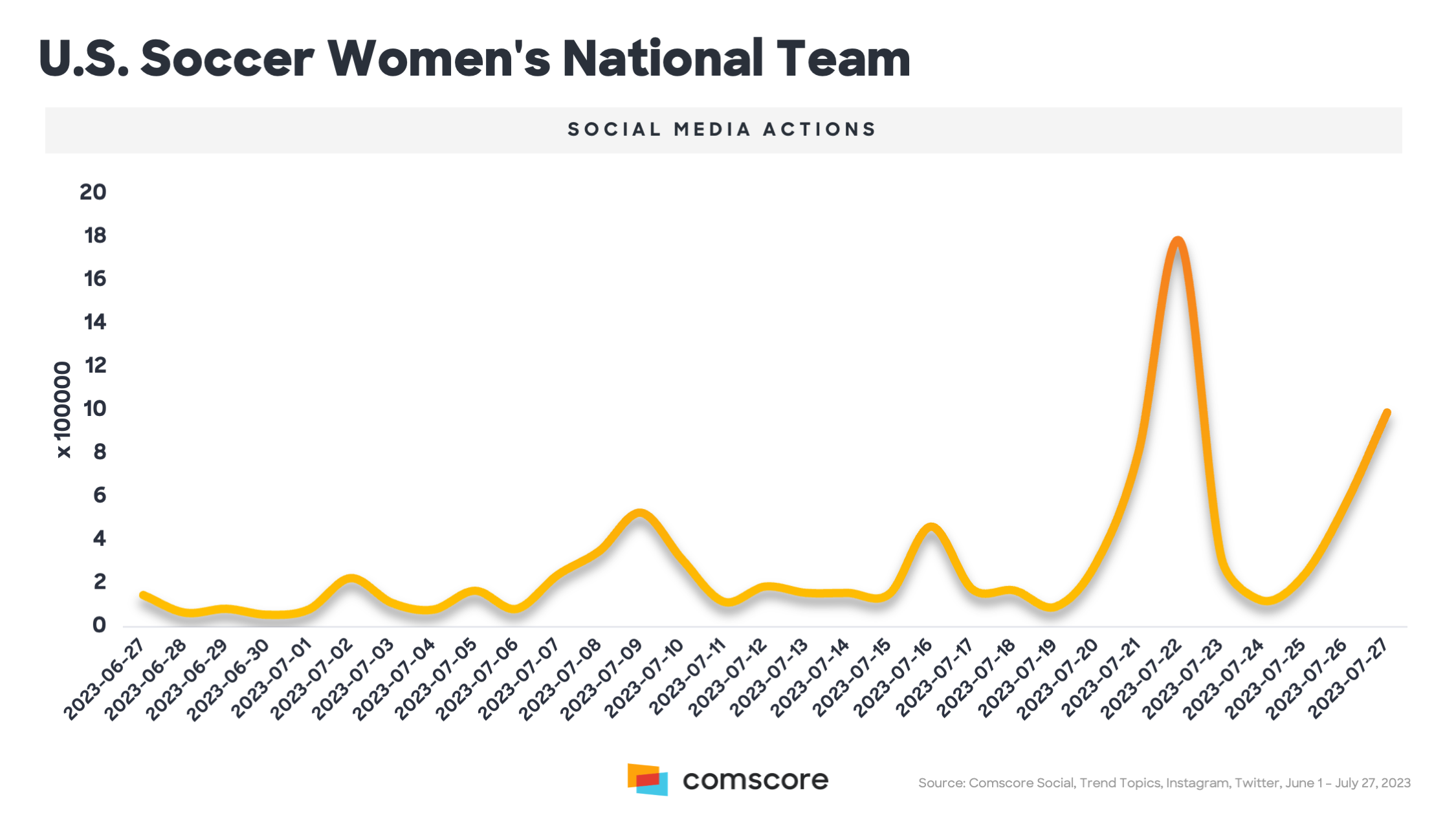 随着女运动员和足球的结合,女足世界杯会进一步推动这些趋势吗?看起来很有希望。随着比赛的开始,美国女子国家队和几名关键球员在社交媒体上的参与度大幅上升。