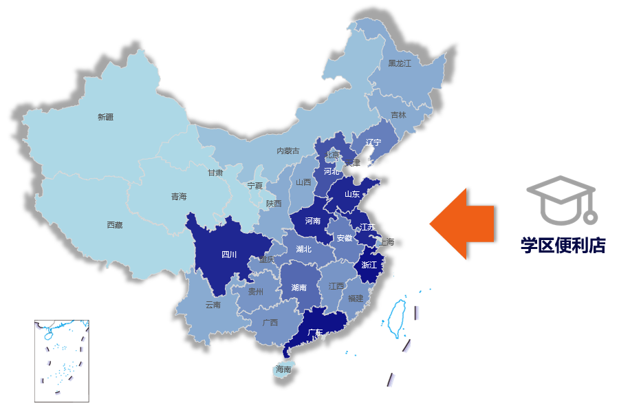 以学区便利店为例,可以看到各省份的学区便利店数量分布并不均匀。
