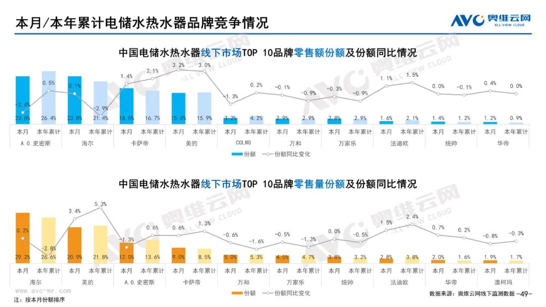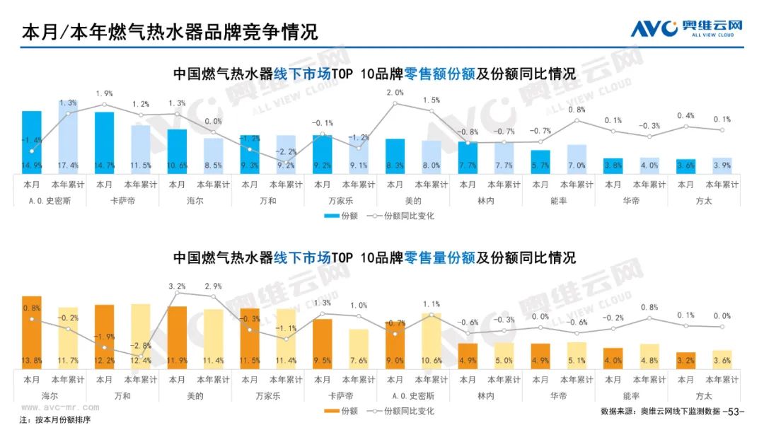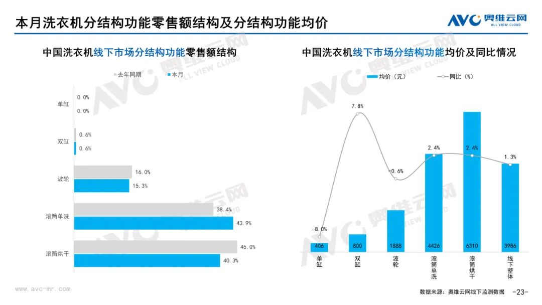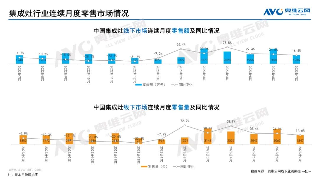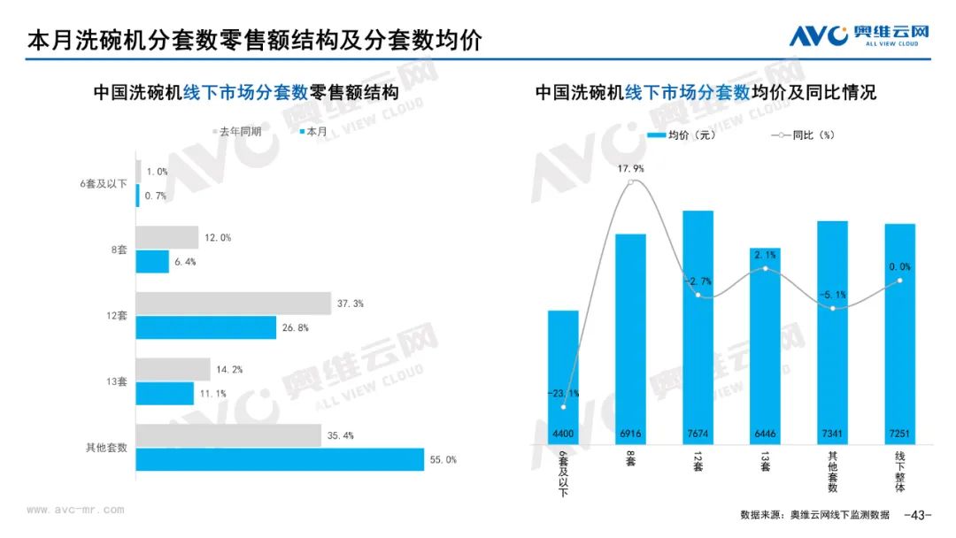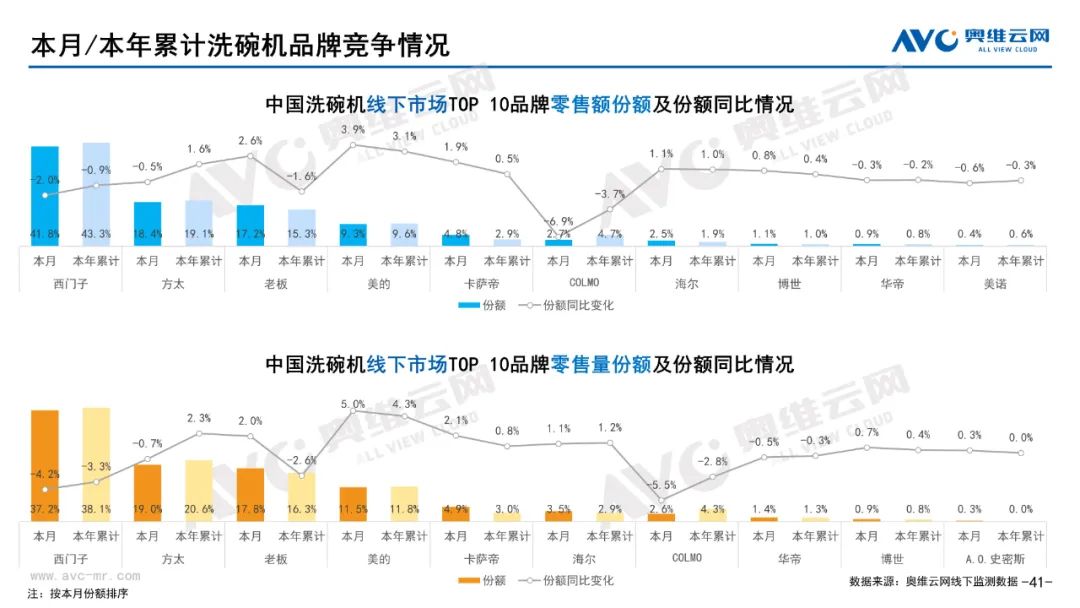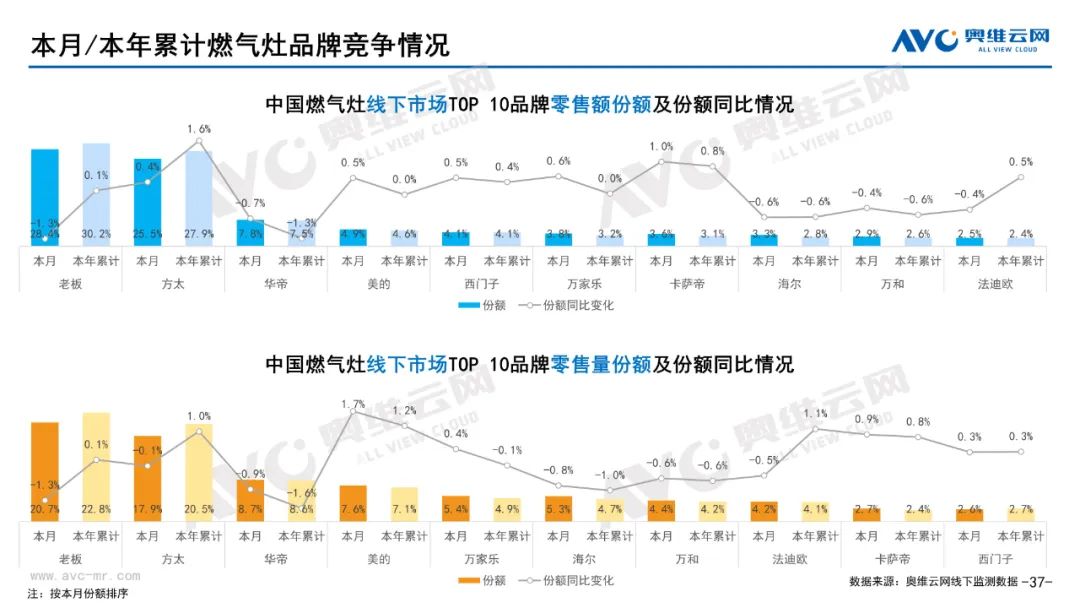 厨卫:据奥维云网(AVC)线下市场监测数据显示,本月厨卫主要品类中,油烟机、燃气灶、洗碗机、集成灶、电热和燃热的线下零售额规模同比分别为0.3%、0.4%、17.2%、16.4%、-5.7%和-2.7%;油烟机、燃气灶、洗碗机、集成灶、电热和燃热的均价分别为3869元、1885元、7251元、9665元、2071元和3301元,同比分别为1.0%、1.1%、0.0%、-0.3%、-2.9%和-2.6%;各品类中,高端品零售额占比分别为14.2%、31.8%、43.9%、10.7%、10.4%和31.0%,同比分别为3.9%、4.1%、7.2%、0.8%、-1.4%和-4.1%。