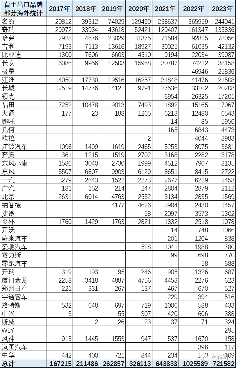 名爵品牌在上汽并购后的出口表现呈现强势增长的态势。奇瑞出口海外数据同样体现了中国汽车出口的良好表现。比亚迪出口爆发增长。