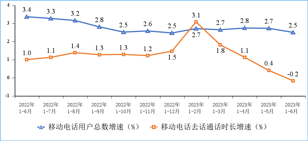 移动短信业务量收呈现持续下降趋势。上半年,移动电话去话通话时长累计完成573.7亿分钟,同比下降1.7%;固定电话主叫通话时长完成24.6亿分钟,同比下降8.5%。移动短信业务量同比下降12.6%,移动短信业务收入同比下降3.3%。