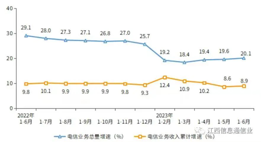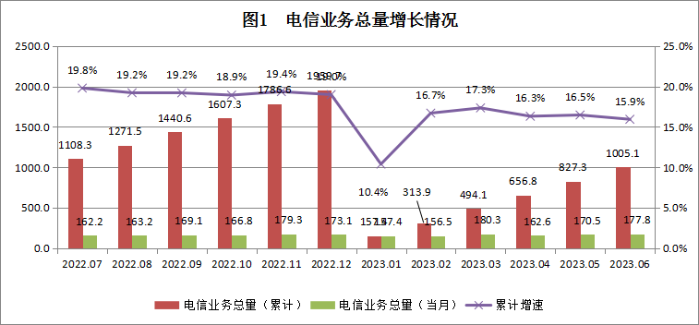 电信业务收入和业务总量保持较快增长。至2023年6月底,我省电信业务收入累计完成713.8亿元,全国排名第2位,同比增长7.8%,增速全国排名第5位;按照2022年不变价计算,我省电信业务总量累计完成729.4亿元,全国排名第2位,同比增长21.1%,增速全国排名第3位。