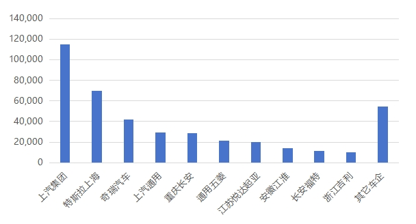 基本型乘用车出口量最多的制造商是上汽集团,出口了115,312辆,占基本型乘用车出口量的27.64%。前十家制造商出口占比达到了86.9%。