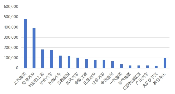 2023年上半年,中国出口汽车214万辆,其中,商用车出口36万辆、乘用车出口178万辆。前16家汽车制造商出口量占比达到了95.3%,其它汽车制造商占比仅为4.7%。特斯拉上海的出口量为18.24万辆,占比8.52%。出口量最多的是上汽集团,总共出口了48.27万辆,占比22.55%。