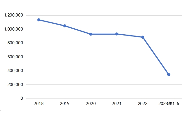 2023年上半年,中国仅进口了344,253辆汽车,2022年进口量为88.42万辆,预计2023年进口量还会下降。自2018年开始,中国汽车进口量一直呈现下降趋势,2018年进口量为113.44万辆,之后的几年下降幅度分别是:-7.6%、-11.5%、0.3%和-5%,预计2023年进口量会下降20%左右。