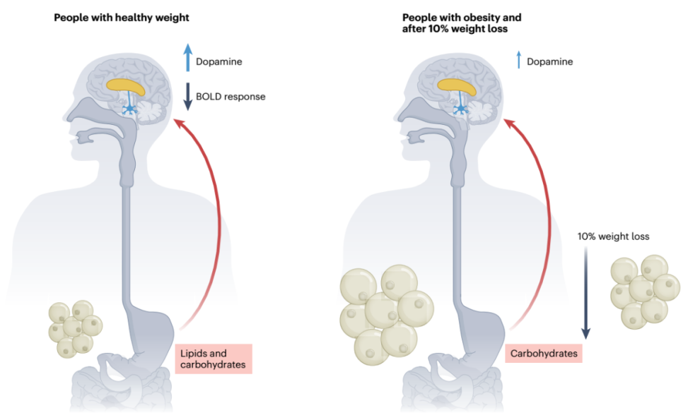 经过12周低热量饮食控制之后,肥胖患者的体重平均降低了10%左右,却不足以恢复大脑的应答反应以及多巴胺释放。