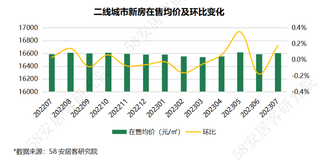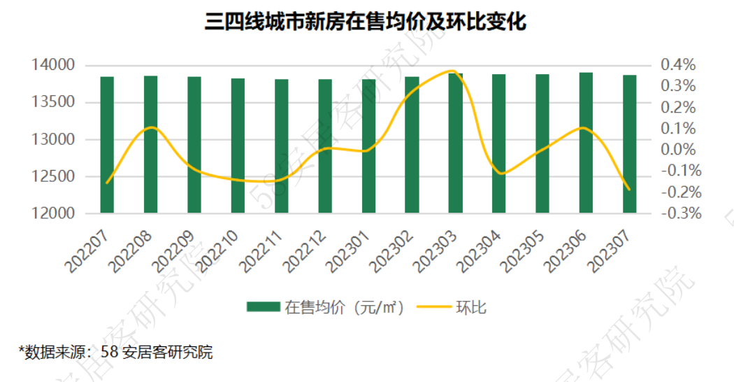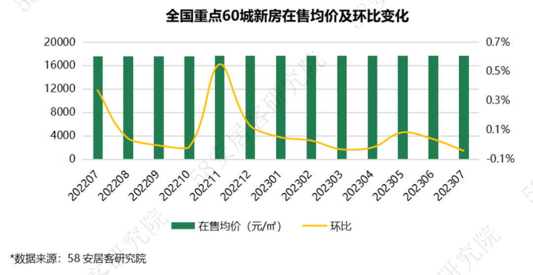 Ø 价格分析: 60个重点城市7月新房在售均价为17727元/㎡,环比微跌0.04%;一线城市、三四线城市新房售价微跌,二线城市新房售价小幅上涨。