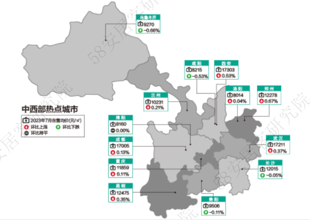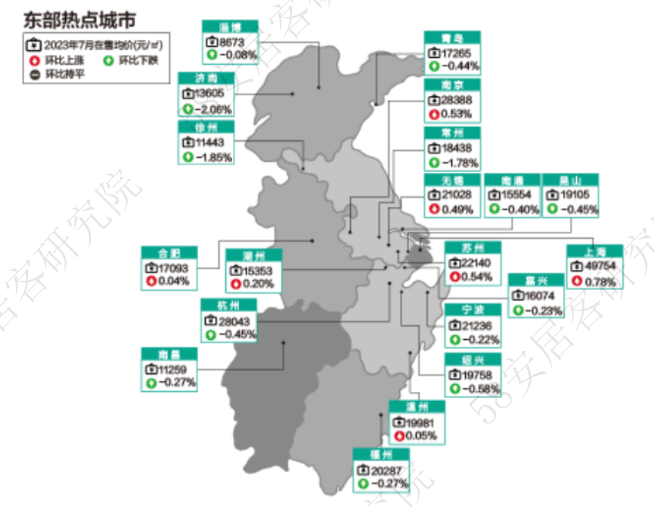 从区域来看,华东区域上半年新房售价环比下跌0.3%,华北东北区域环比上涨0.4%,华南区域和中西部新房在售均价也微涨。城市方面,中西部和华北东北区域城市中,多数城市均价上涨。华东区域在售新房均价下跌的城市较多。