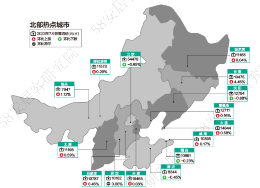 7月60个重点城市新房在售均价17727元/㎡,环比微跌0.04%,表现相对平稳。其中34个城市新房在售均价上涨,26个城市下跌。