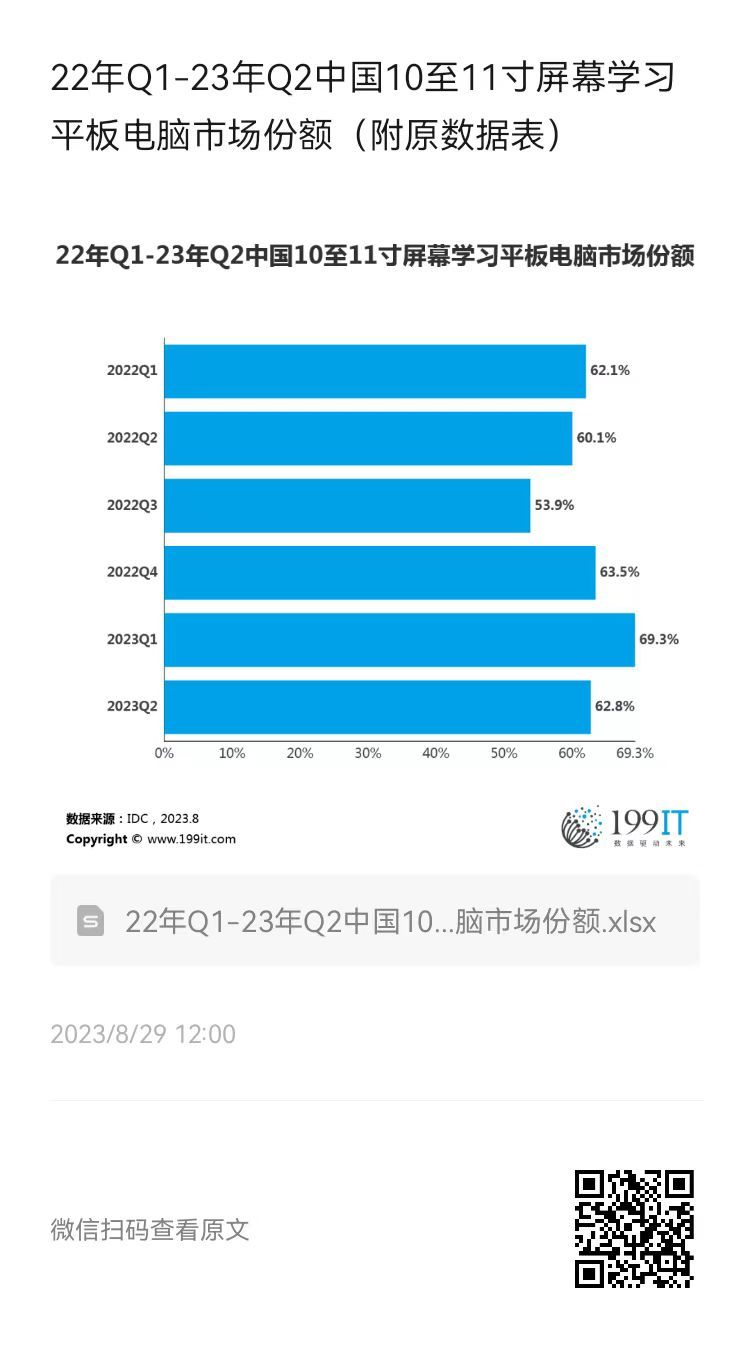 22年Q1-23年Q2中国10至11寸屏幕学习平板电脑市场份额(附原数据表) ​​​