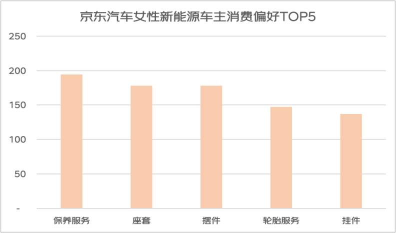 男性和女性新能源车主在消费偏好上也呈现出明显的区别,男性用户在配件和改装上的支出比例最高,而女性用户更偏爱把服务交给京东汽车,自己则在摆件和挂件上进行了更高比例的消费。