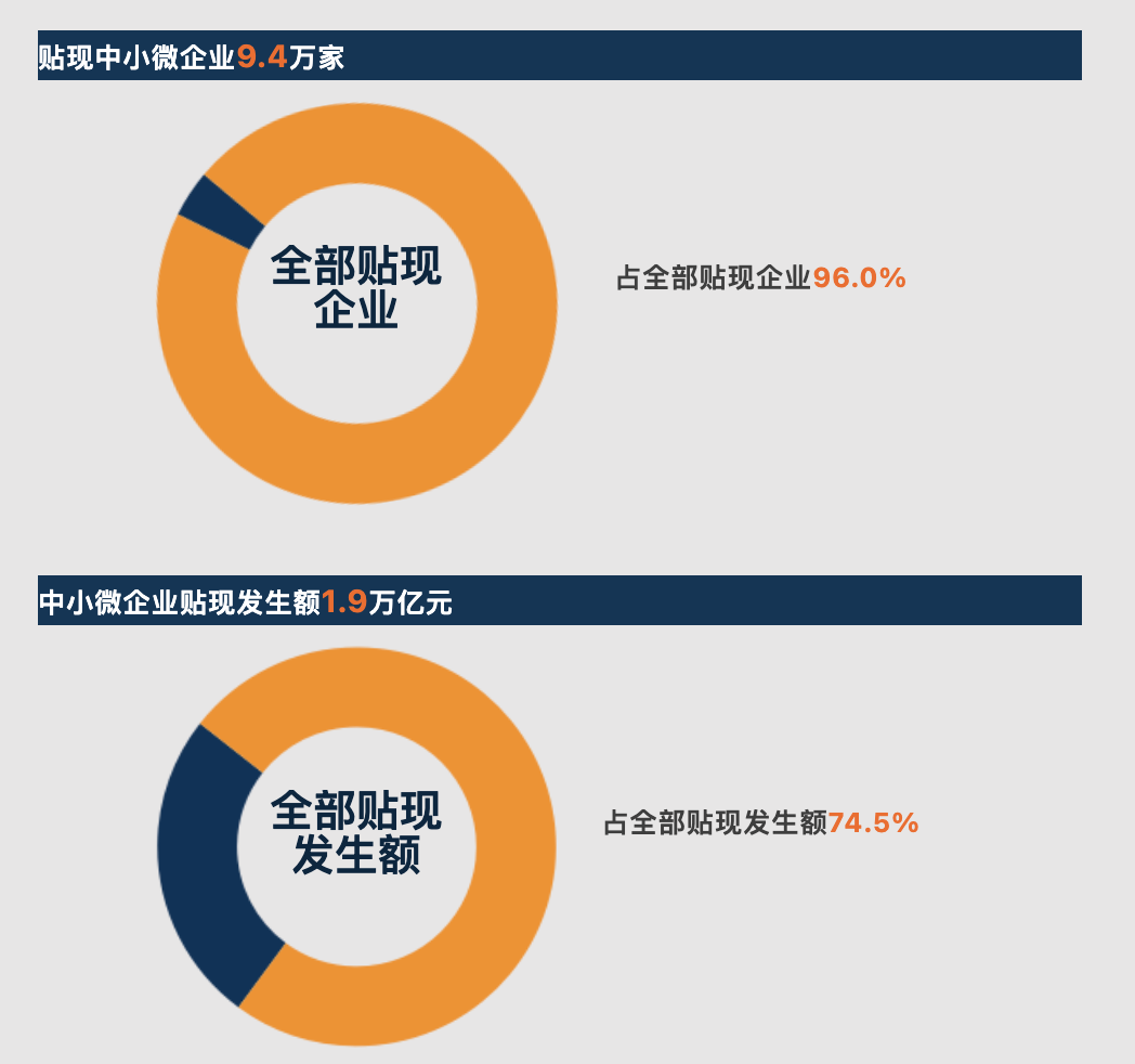 7月份,签发票据的中小微企业10.1万家,占全部签票企业的91.5%,中小微企业签票发生额2.0万亿元,占全部签票发生额的67.5%。贴现的中小微企业9.4万家,占全部贴现企业96.0%,贴现发生额1.9万亿元,占全部贴现发生额74.5%。