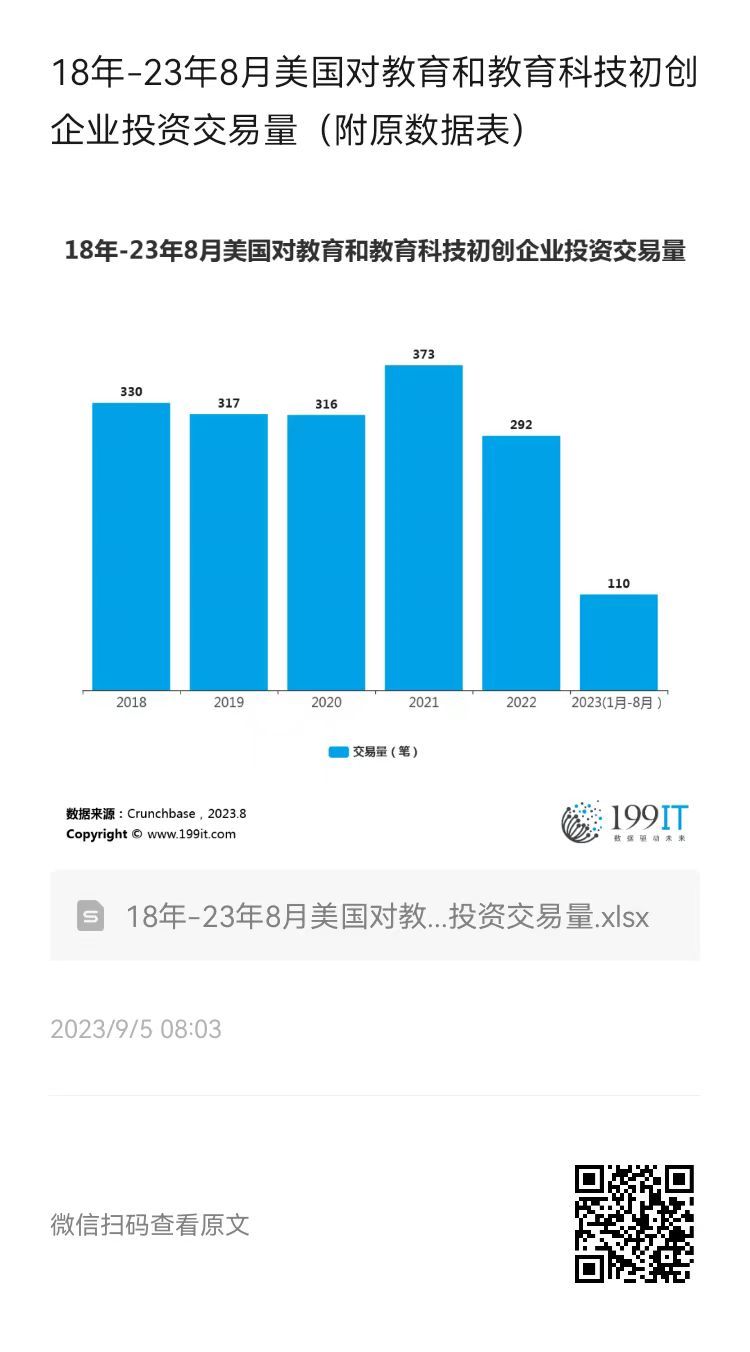 - 18年-23年8月美国对教育和教育科技初创企业投资交易量(附原数据表)