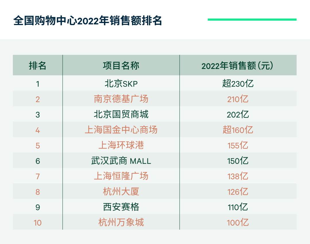据2022年全国购物中心销售额排名显示,华东主要城市表现亮眼。其中,南京德基广场以210亿元的销售额稳居“200亿梯队”。尽管受到疫情的短期扰动,上海市场在2022年依然表现稳定,上海国金中心商场和恒隆广场于核心商圈持续稳健发展,而环球港则以全面覆盖各类消费群体的商业布局,在众多高端商业项目中保持优势地位。由南京及上海,各具特色的商业氛围为国际高端品牌在华东地区深耕和创新提供了有力支持,也同时在培育和打造国际消费中心城市的道路上发挥着积极作用。