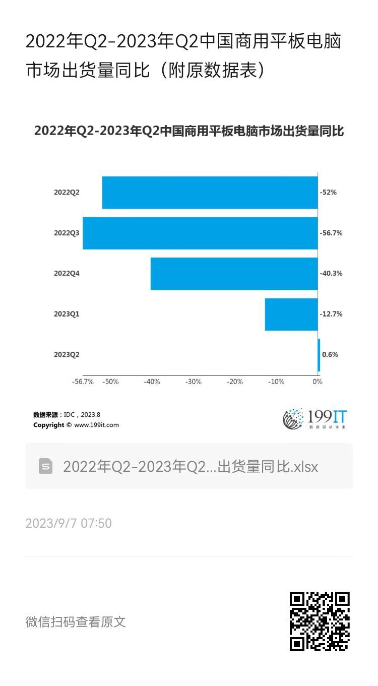 2022年Q2-2023年Q2中国商用平板电脑市场出货量同比(附原数据表) ​​​