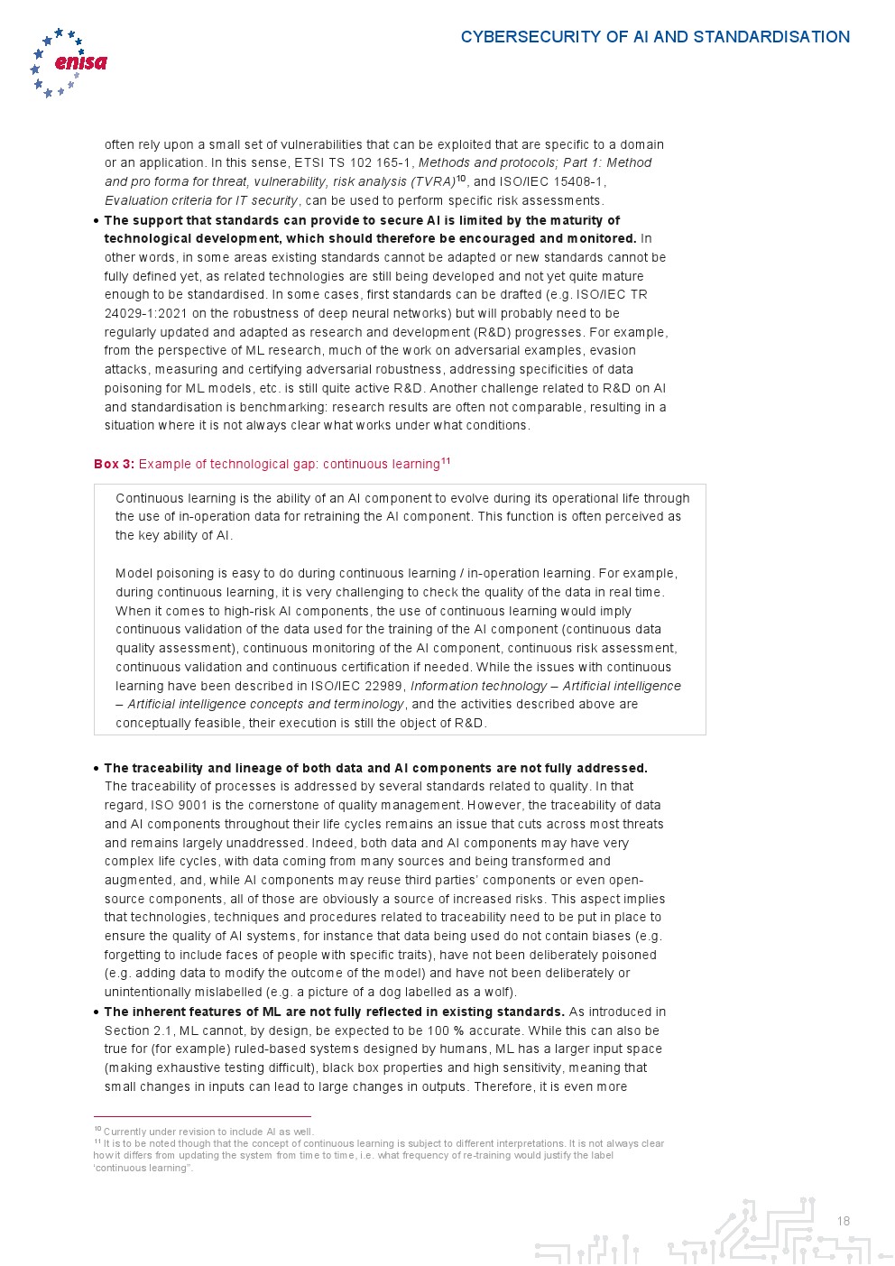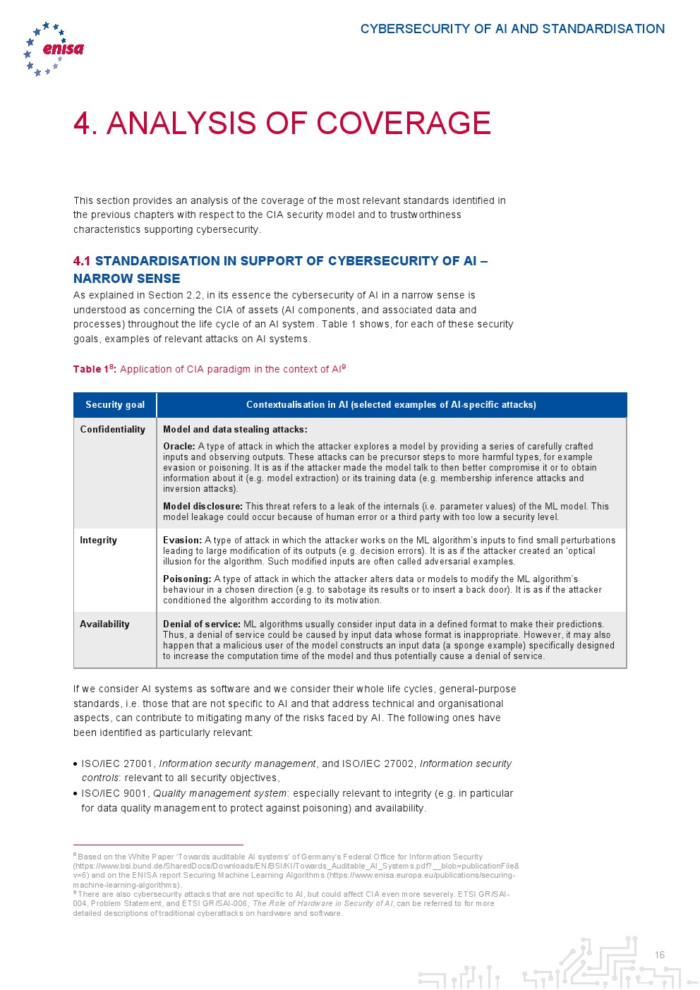 报告认为,现有的通用技术和组织标准可以通过具体指导在人工智能环境中的应用,有助于减轻人工智能面临的一些风险。这种考虑源于这样一个事实:本质上,人工智能是软件,因此软件安全措施可以转移到人工智能领域。