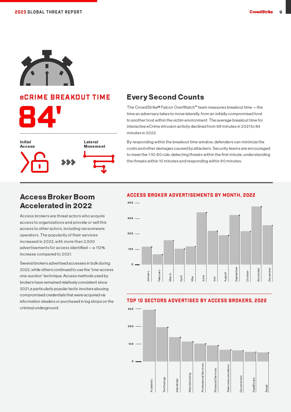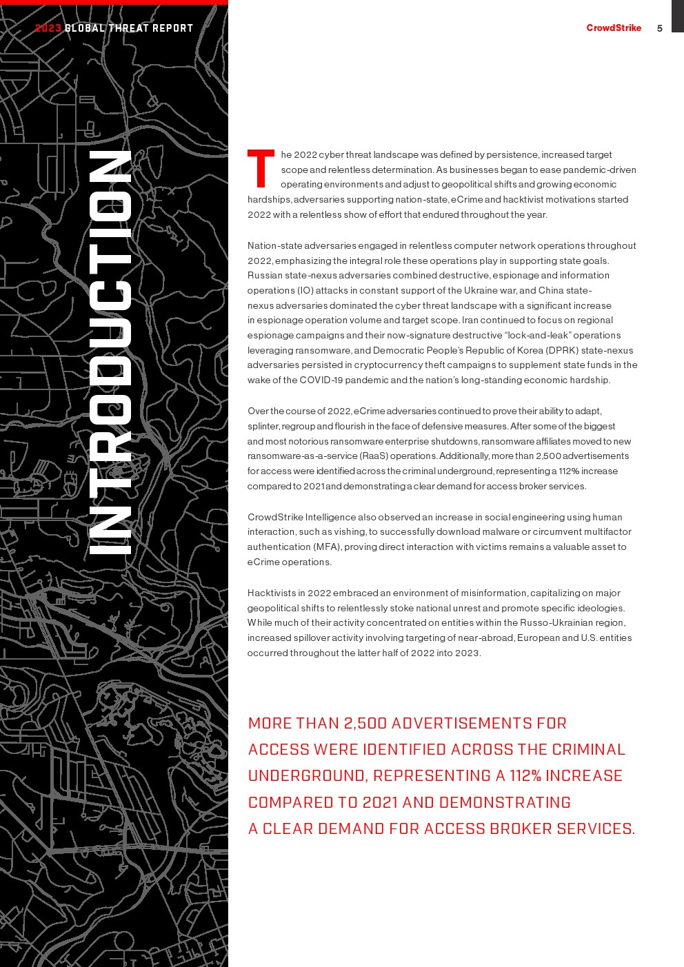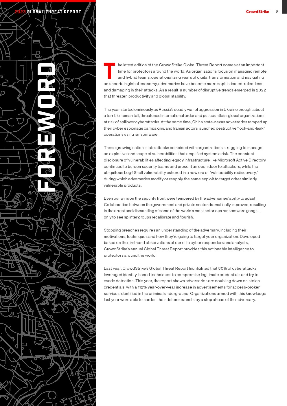 CrowdStrike发布了“2023年全球威胁报告”。2022年的网络威胁格局是由持续、目标范围扩大和不懈的决心所定义的。随着企业开始缓解疫情驱动的运营环境,适应地缘政治变化和日益严重的经济困难,支持民族国家、电子犯罪和黑客主义动机的对手在2022年开始了持续一年的不懈努力。