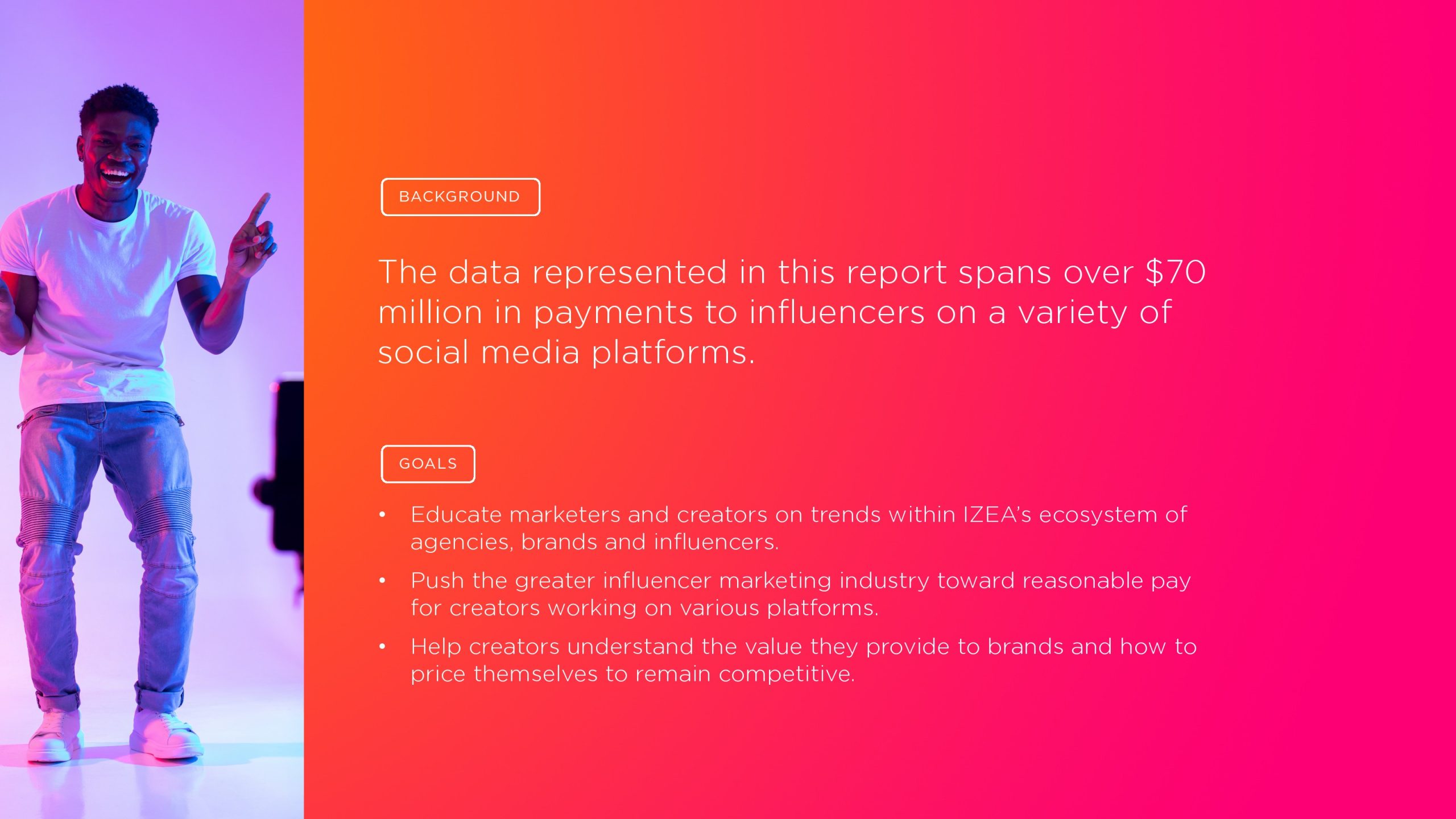 报告分析了2015年至2022年在IZEA平台上观察到的超过7000万美元的网红收入。数据包括营销人员和创作者之间的协商价格,从微意见领袖到Twitter、Facebook、Instagram、Twitch、Pinterest、TikTok和YouTube上的名人。