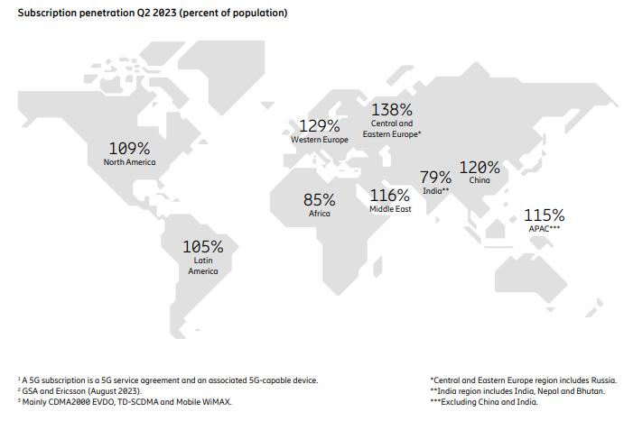 独立移动用户数量为61亿人。订阅数量和订阅者数量之间的差异是由于非活动订阅、多个设备所有权和/或针对不同类型呼叫的订阅的优化。
