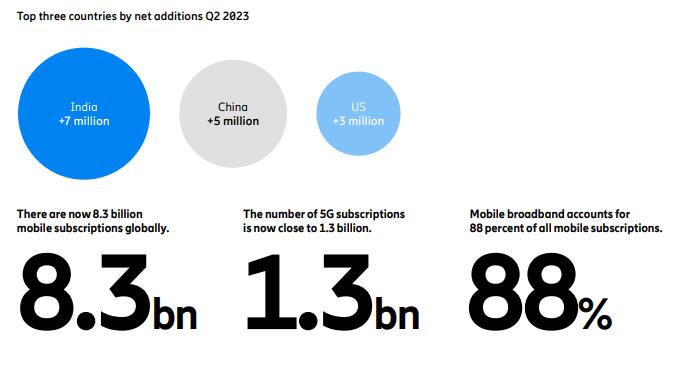 2023年第二季度全球移动用户总数为83亿人,本季度净增加4000万用户。