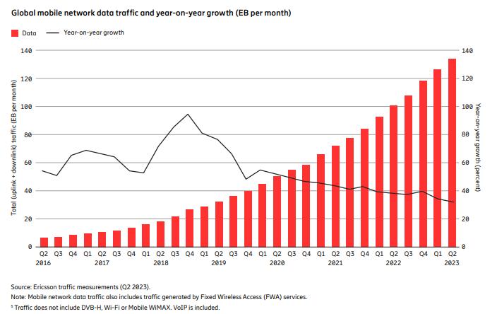 移动宽带用户数量在本季度增长了约1亿人,达到74亿人,同比增长5%。移动宽带现在占所有移动用户的88%。