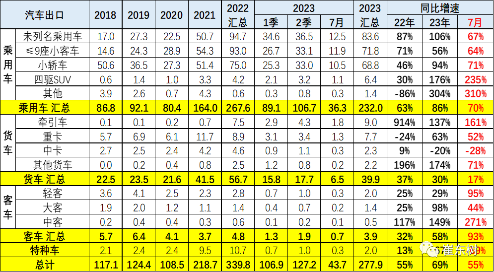 2023年的乘用车的出口增速超强于2022年增速。纯电动货车的出口很强,这是很好的表现。