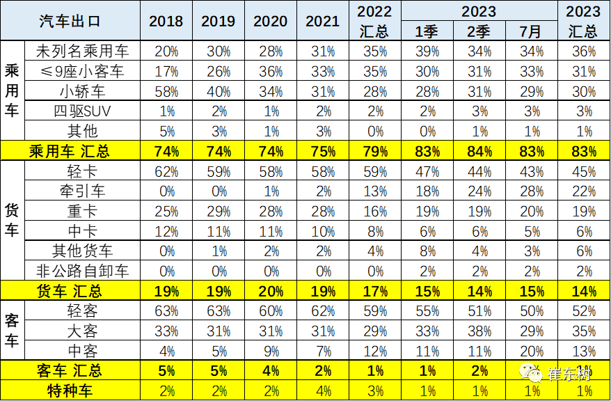 从结构看,乘用车出口表现上升的是未列名乘用车的出口,2023年未列名乘用车的出口达到乘用车占比36%。