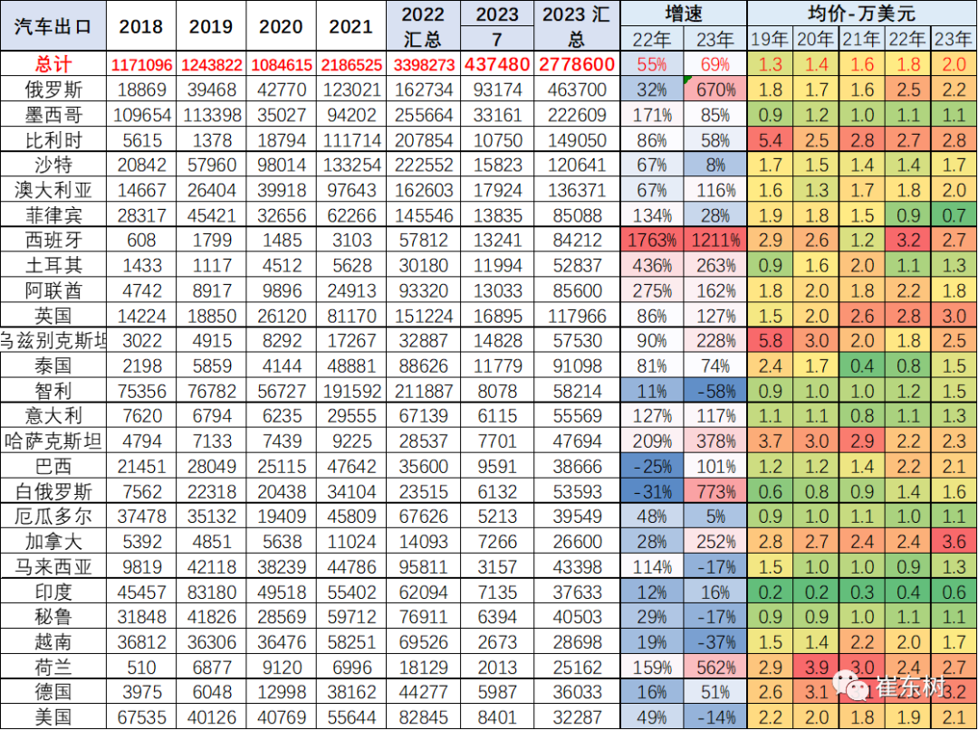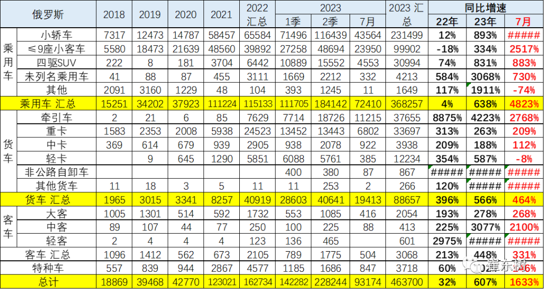 2022年中国对俄罗斯出口16万台,2023年1-7月出口46.4万台,同比增长607%。俄罗斯突然变成中国汽车出口第一大市场,这是时隔15年后中国汽车再一次的出口巨变,当年中国自主品牌进军俄罗斯的市场表现很好,但随着俄罗斯对中国汽车巨额加征关税政策,当年中国汽车几乎退出俄罗斯。