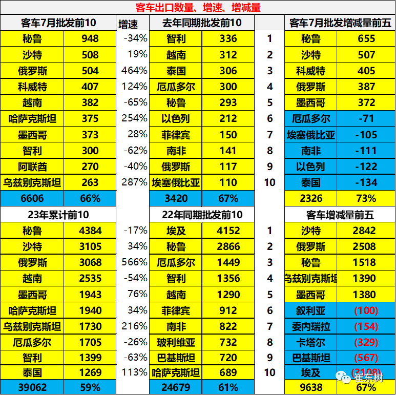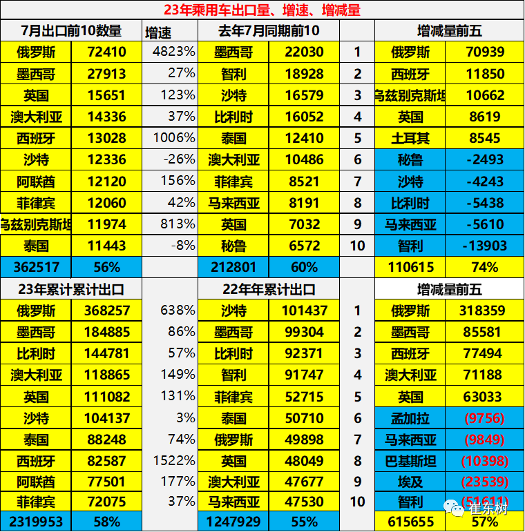 2023年1-7月份增量相对较多的是俄罗斯、欧洲和北美、亚洲的市场,俄罗斯、墨西哥、澳大利亚等都很强。