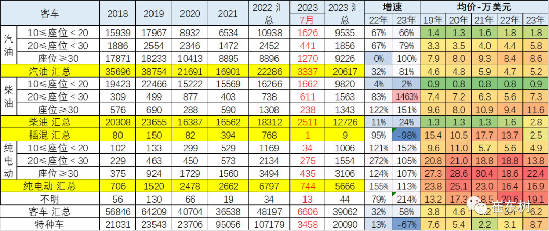 2023年疫情后的世界需求恢复,中国客车1-7月出口恢复增长到3.9万台。纯电动客车出口持续恢复。