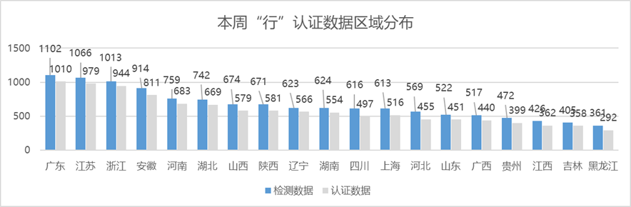 2023年8月第四周,上报 “行”认证统计数据中基于国家标准检测车辆为12689台,提报数较上周减少约2%,其中,符合“行”认证标准的11146台占比约为88%,符合团标的7314占比约57%,整体车况质量与上周基本保持一致。