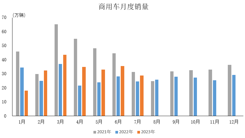 2023年7月,商用车产销分别完成28.6万辆和28.7万辆,环比分别下降16.4%和19%;同比分别增长17%和16.8%。