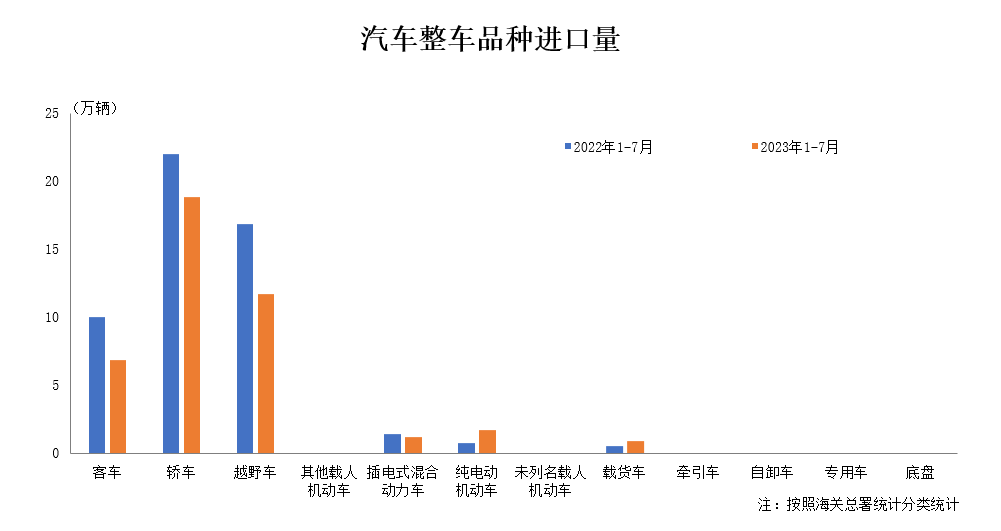 2023年1-7月,与上年同期相比,轿车、越野车和小型客车进口量均明显下降。上述三大类汽车品种占汽车进口总量的90.6%。